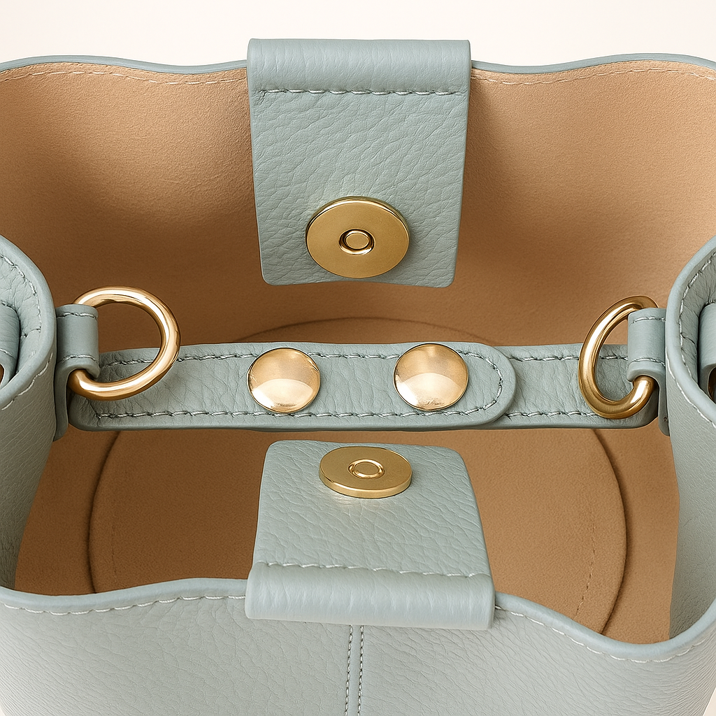 Bolso de piel granulada estilo bombonera con doble cierre para una mayor seguridad
